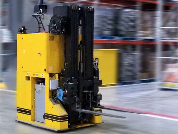 AGV(Automated Guided Vehicle)는 AMR(Autonomous Mobile Robot)과 달리 바닥에 표시된 긴 선이나 전선을 따라 이동하거나 전파, 비전 카메라, 자석 또는 레이저를 사용하여 탐색하는 휴대용 로봇이다. 이는 공장이나 창고와 같은 대규모 산업 건물 주변에서 무거운 자재를 운반하기 위해 산업 응용 분야에서 가장 자주 사용된다. 자동유도차량의 적용은 20세기 후반에 확대되었다. AGV는 레이저 유도 차량(LGV)이라고도하며 독일에서는 이 기술을 FTS(Fahrerloses Transportsystem) 하며 스웨덴에서는 förarlösa Truckar라고도 한다. 저렴한 버전의 AGV는 종종 AGC(자동 가이드 카트)라고 불리며 일반적으로 자기 테이프로 안내된다. AMR이라는 용어는 때때로 추가 인프라(예: 자기 스트립 또는 시각적 마커)에 의존하지 않는 모바일 로봇과 그렇지 않은 모바일 로봇을 구별하여 사용됩니다. AGV는 다양한 모델로 제공되며 조립 라인에서 제품을 이동하고, 공장이나 창고 전체로 상품을 운송하고, 화물을 배달하는 데 사용할 수 있다.